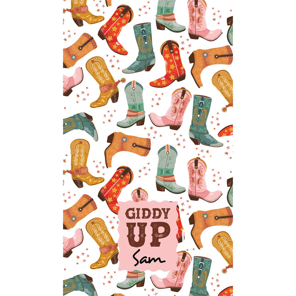 - No personalization – This item can be purchased without personalization. I only want the boot illustration without the pink box or any text.